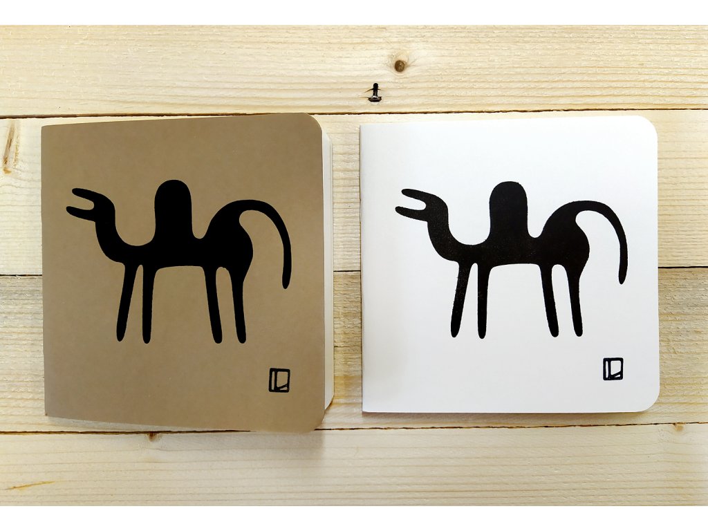Sešit čtvercového formátu, rozměr 14,5 x 14,5 cm, uvnitř 30 listů z recyklovaného papíru. Desky sešitu tvoří recyklovaný kartonový papír, hnědá barva ladí s černým dekorem "velbloud III.". Vyšší gramáž 300 g/m2 zajišťuje pevnost a stálost sešitu. Na obalu (deskách sešitu) je umístěna malá značka / logo pana Lhotského. Zvolit si můžete mezi hnědou či bílou variantou desek sešitu.