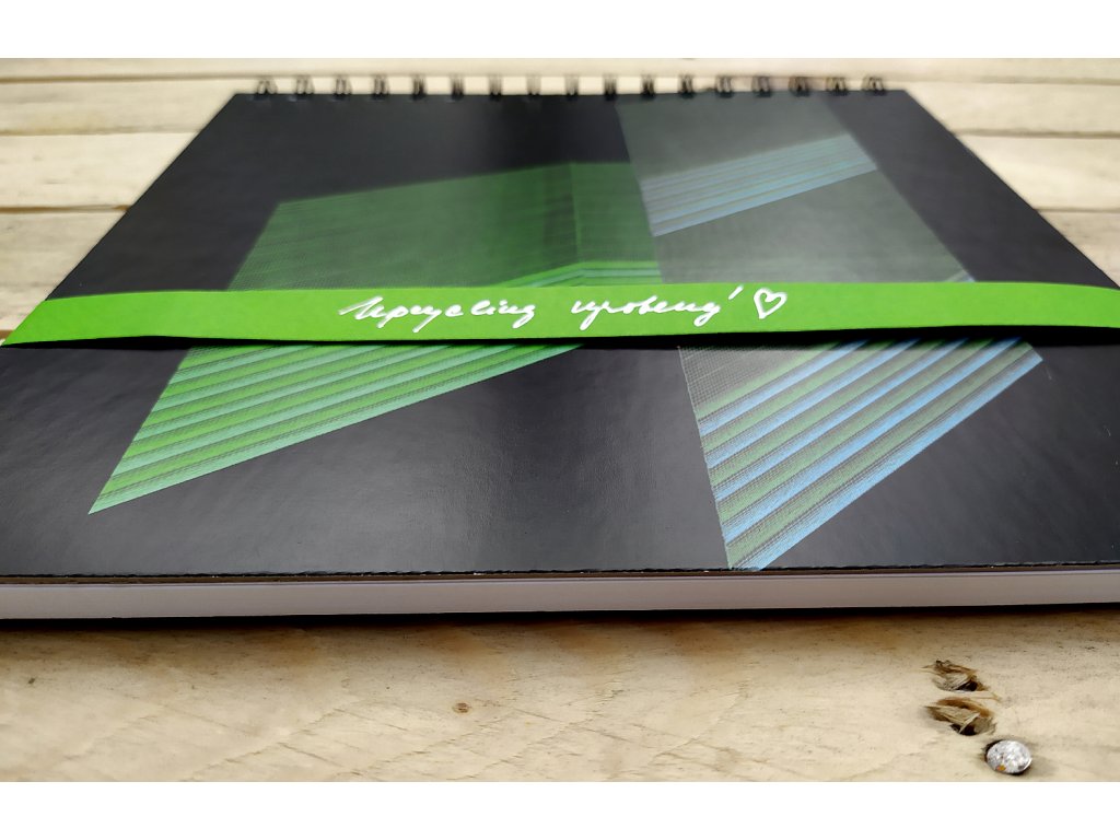 Rozměr kroužkového bloku je téměř čtvercový, přesně 227 x 215 mm a obsahuje cca 40 listů čistě bílých papírů vyšší gramáže.