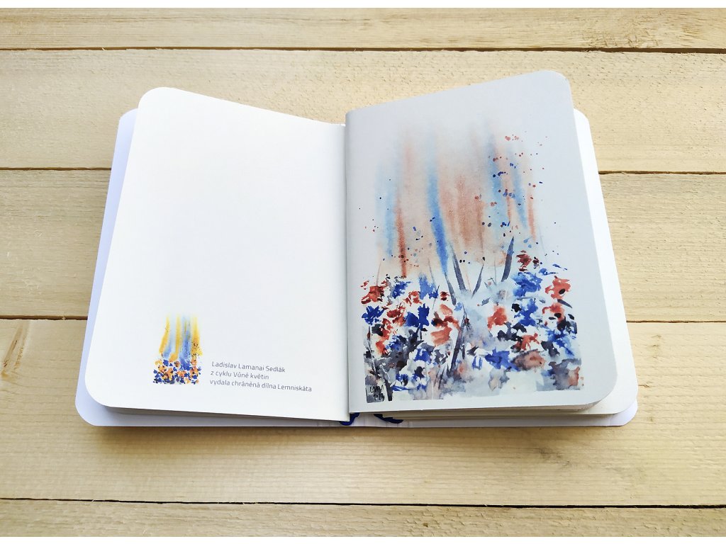 Ručně vyráběný ART kreativní deník s obrázky výtvarníka Ladislava Lamanaie Sedláka, jsou jeho akvarelovým vyznáním z neuchopitelné a křehké krásy květin. Ženy osloví a muže může inspirovat k obdarování :-)