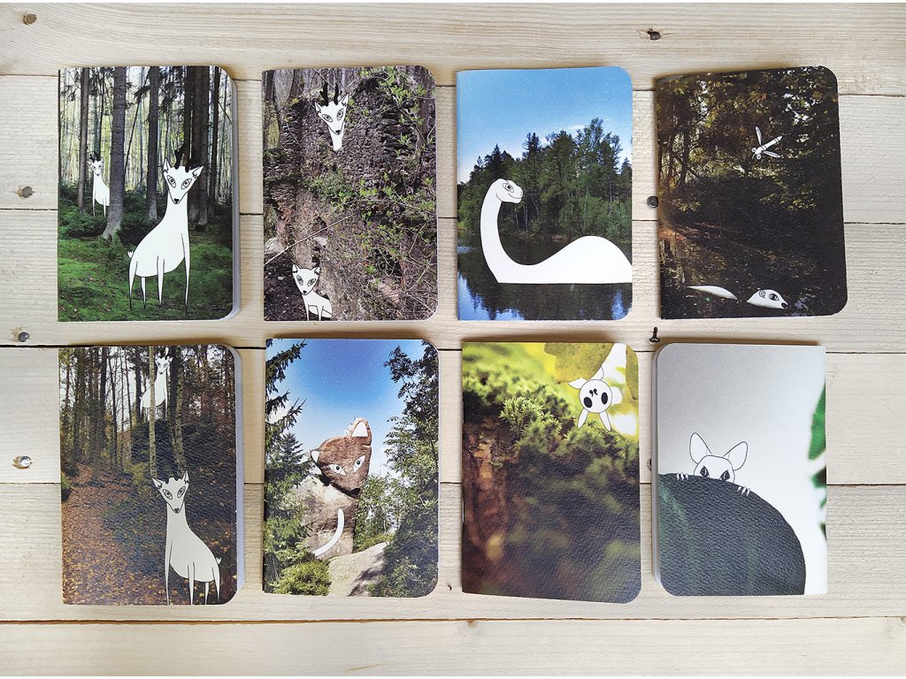 Land-artová díla se na našich sešitech objevují poprvé. Fotografie Veroniky Červené, které autorka doplnila hravými a líbeznými postavičkami ze světa zvířat a pidifousů, jsou hravé a originální. Nabízíme je buď jako jednotlivé notýsky, nebo jako součást kreativních deníků Antalis, obojí ve formátu A6.