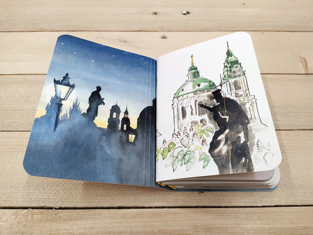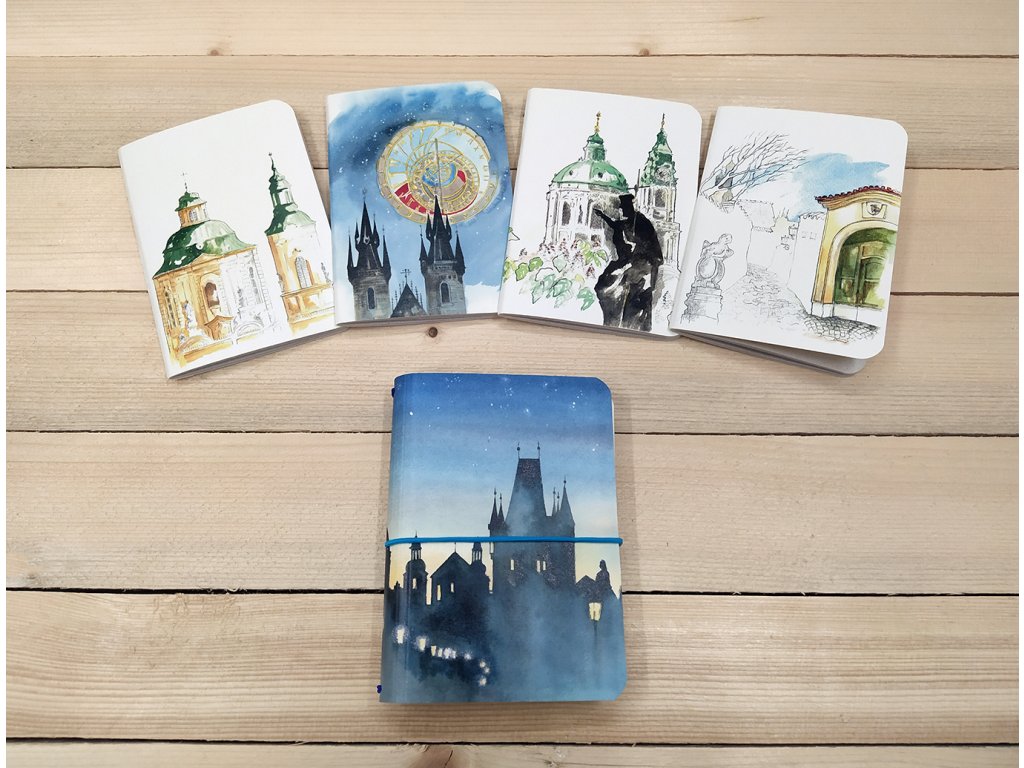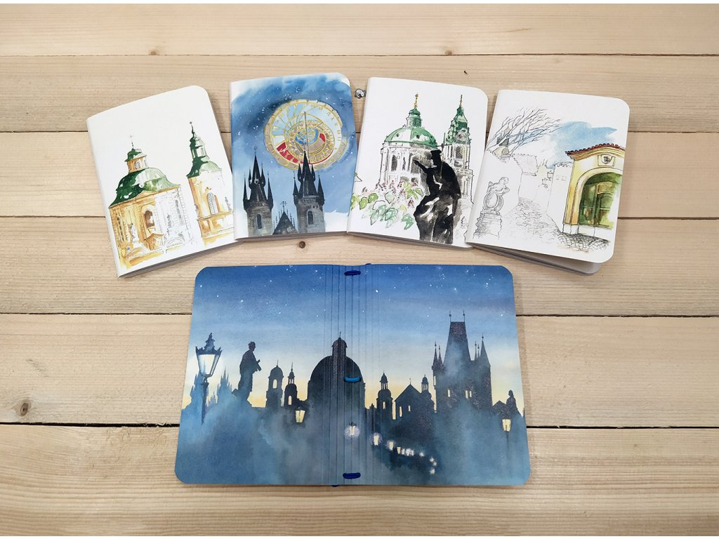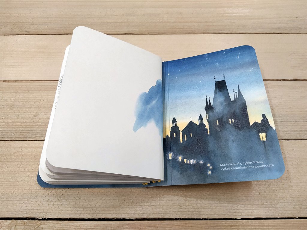 Ručně vyráběný ART kreativní deník s akvarelovými obrázky výtvarnice Martiny Skaly potěší všechny milovníky pražských zákoutí.