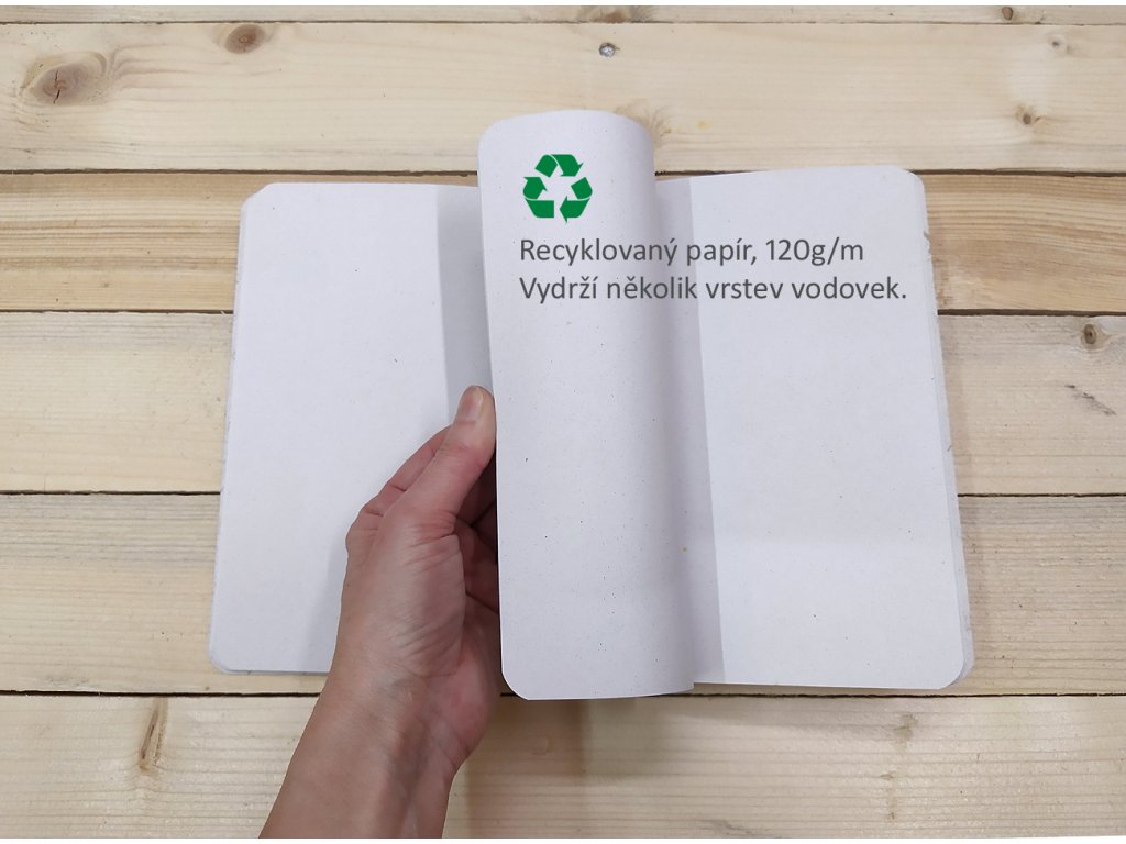 - 26 vnitřních listů recyklovaného papíru – 120g/m2 – vydrží i vodové barvy