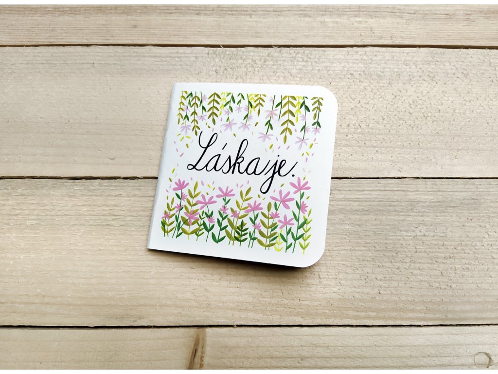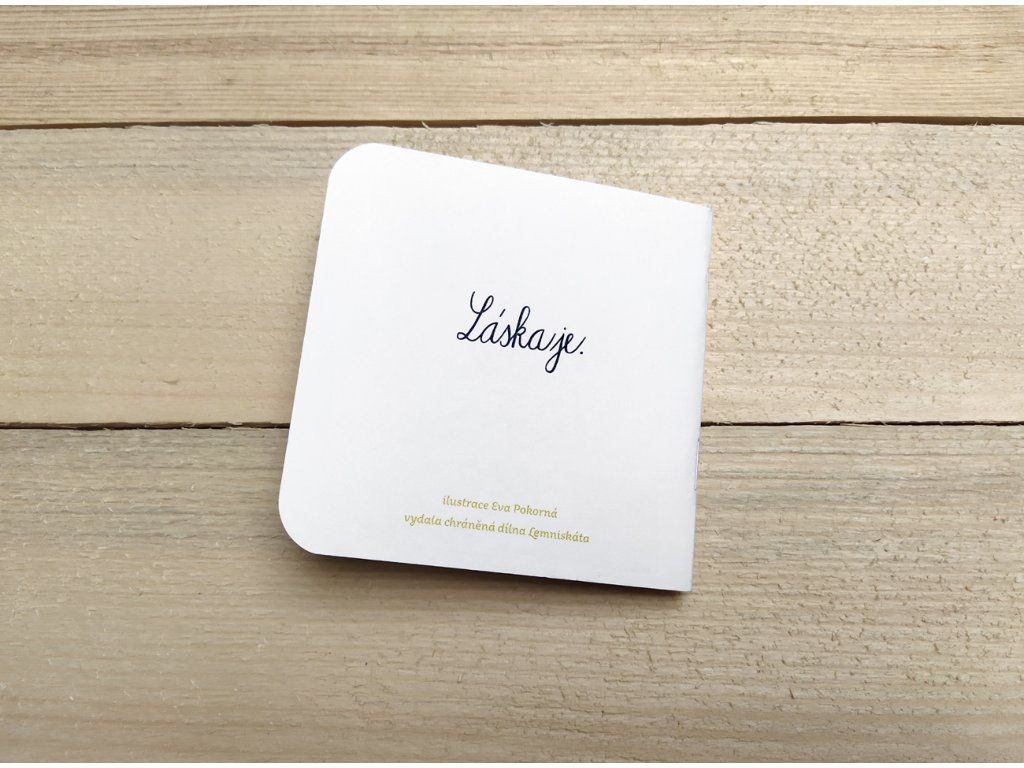 Afirmace "Láska je". Naše ručně vyrobené sešity poznáte i podle typicky zaoblených rohů, které předcházejí "oslím uším".