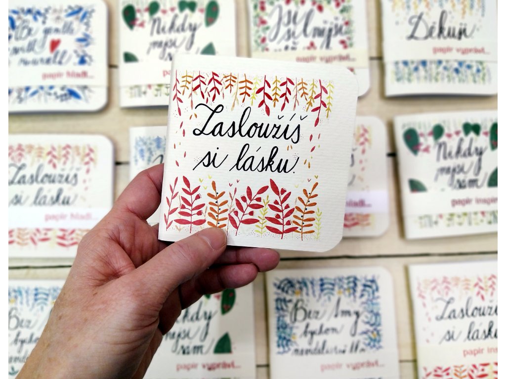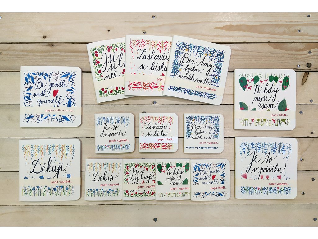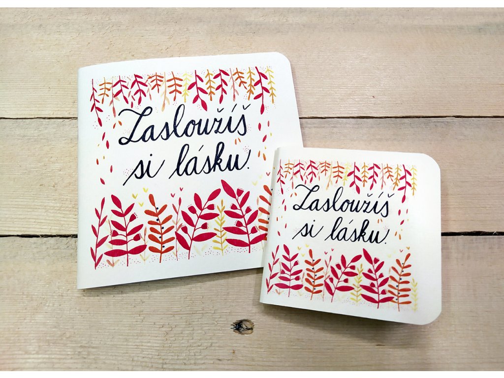 Afirmace "Zasloužíš si lásku". Naše ručně vyrobené sešity poznáte i podle typicky zaoblených rohů, které předcházejí "oslím uším".